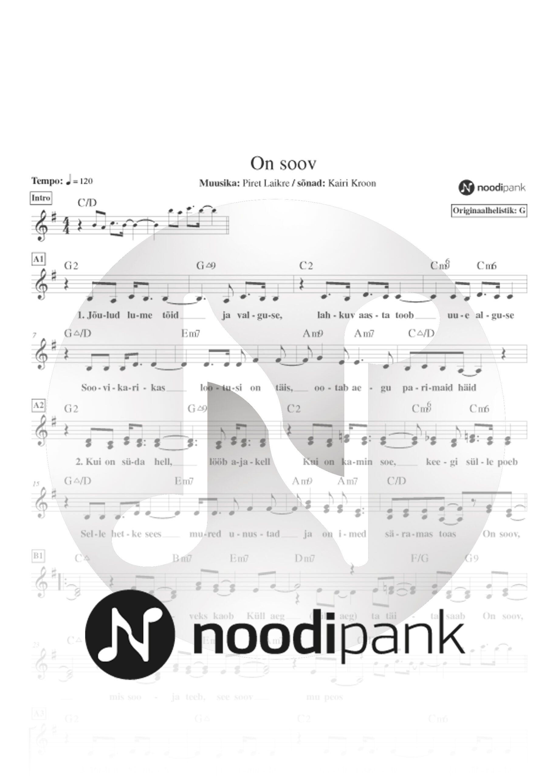 KUULA ORIGINAALESITUST NB! Noot on tehtud lihtsas seades põhiliselt 2 häälsena tüdrukute vokaalgrupile, lõpurefrään 3-häälne. Audio näide on Laikrete perebändi järgi, mitte antud seades.