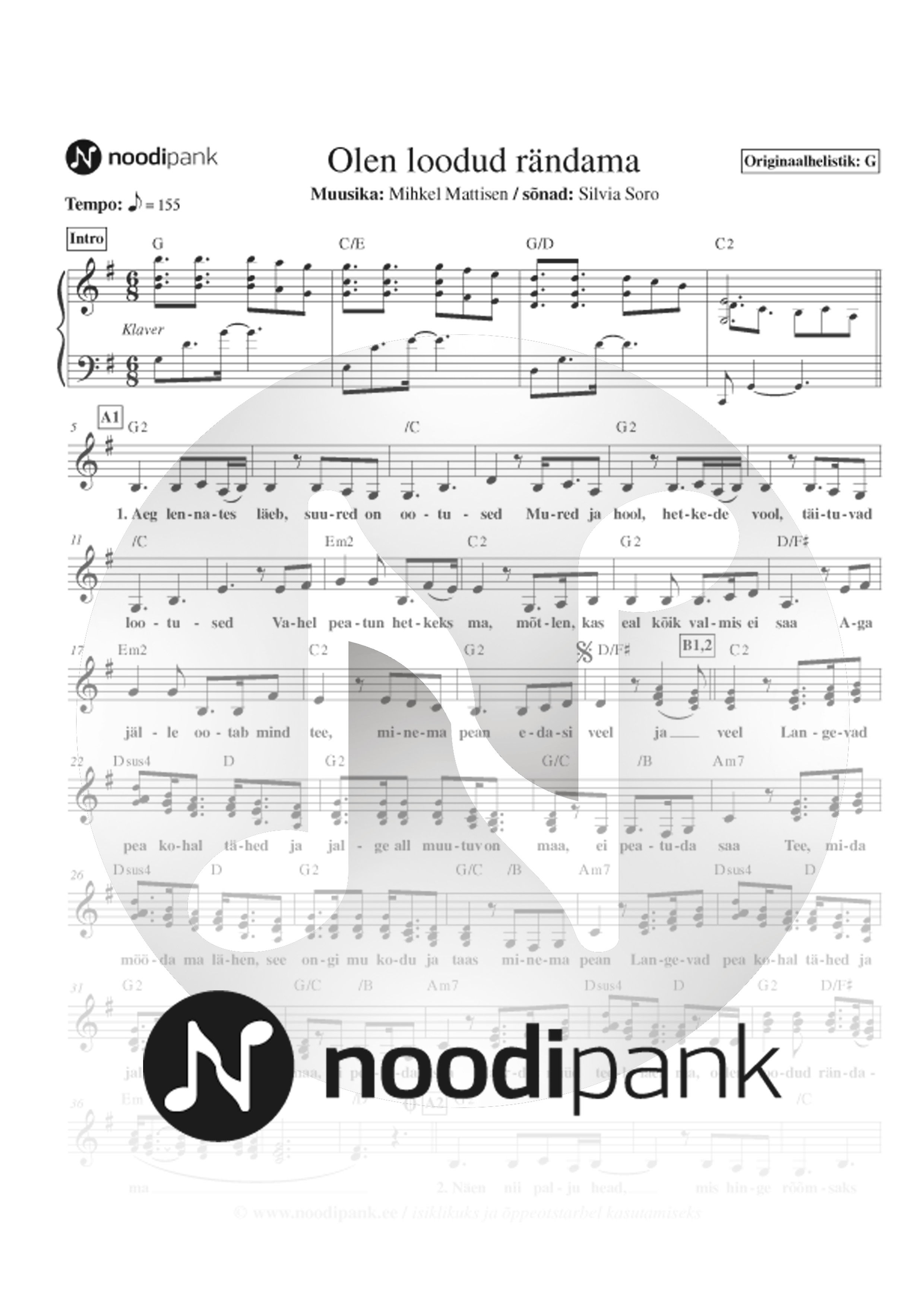 Olen loodud rändama / Birgit Õigemeel / solistile ja taustvokaalile
